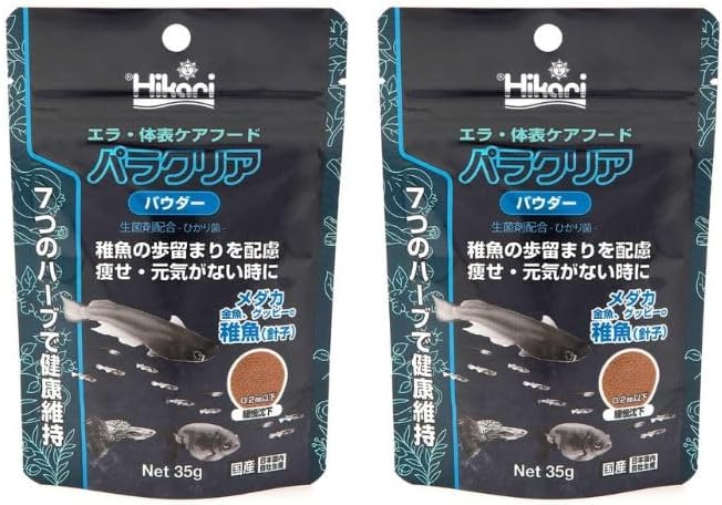 パラクリアはキョーリンから販売されている寄生虫駆除効果がある配合飼料です。エラ病の原因となる寄生虫を駆除する効果があるハーブが含まれており、3週間与えると寄生虫を完全駆除できるエサでメダカの飼育にも用いられています。